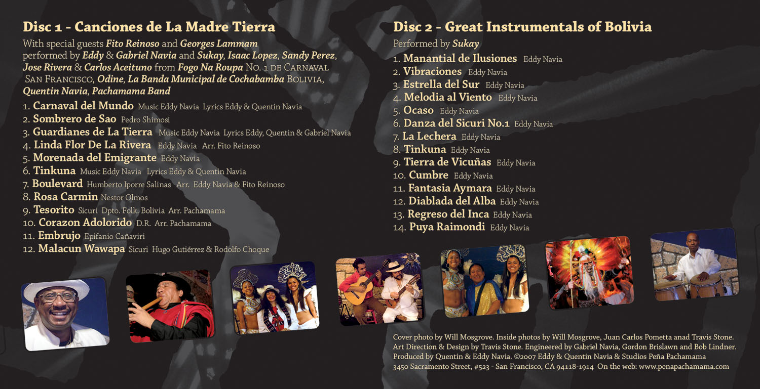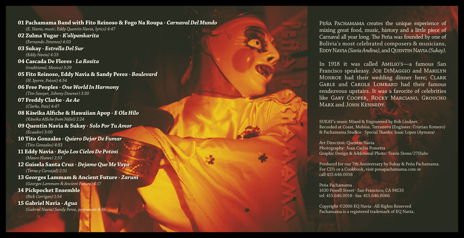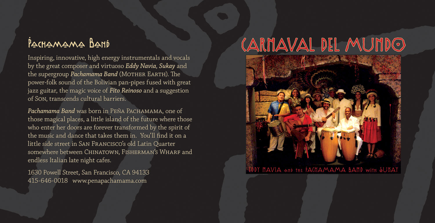 4-panel CD cover for a compilation of songs performed at the Peña Pachamama Center